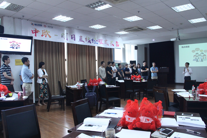结束了开营仪式,数字中欧的讲师郑炯作了《管理者的角色认知》主题培训。他从古典管理的起源讲述到当下的管理情景,引发大家的深度思考和激烈讨论。接着,老师聚焦到团队管理的痛点,进行多维度的梳理,包括群策群力的标准流程再到个人贡献者到团队管理者的角色转变,进行多个情形再现。利用沙漠掘金的团队游戏让大家情景带入,引出管理理念。为期一天的线下教学在热烈掌声里顺利落下帷幕,期待学员们在未来的6个月能够快乐学习,快乐成长!
