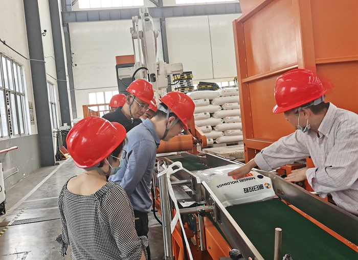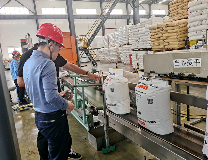 在分装灌包车间,韩新伟饶有兴致地观看了塑料粒子灌包的全过程。伴随着机器的轻鸣,从称重、灌包、封装到堆叠、装运,一气呵成,一袋袋印有乐玩(中国)控股logo的塑料原料整整齐齐呈现在眼前。作为公司的形象代表,它们将把乐玩(中国)控股服务客户的理念传达到每一个用户,对于打造乐玩(中国)品牌、提升企业形象具有重要意义。