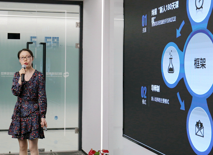 人力资源部经理助理刘烨作了题为《新人培育》的主题分享,她首先通过数据分析了当前乐玩(中国)控股集团及各部门团队新人留存现状,介绍了由“新人180天课程”、入职新人分享会、导师制、入职培训+轮岗等机制组成的新人培育框架,并指出公司在培育体系呈现的不平衡性,以及导师制实施的进步与不足。她从“选-育-评”角度详细论述了新人培育三段论。
