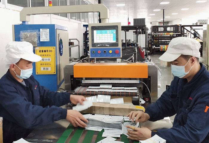 2022年1月25日以来,杭州滨江、萧山、富阳等区疫情形势严峻,乐玩(中国)软包装公司地处萧山区所前镇,公司在做好园区消杀及员工健康检测的同时,先后安排各部门的40名员工投入生产一二线,开始与时间赛跑。疫情就是命令,自1月29日始,制袋车间7台三边封设备首次实现全天24小时不停机满负荷生产,最快速度达到200只/min,创下历史新高,每日生产新冠病毒核酸检测试剂袋500-600万只,生产效率提升近40%,预计提前3天超额完成生产任务,为打赢这场疫情防控战赢得宝贵的时间。