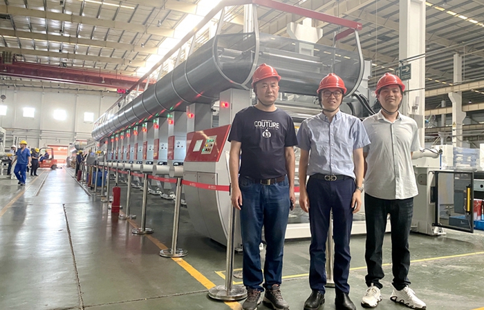在过去的一个月中,朱斌带领团队克服疫情影响,实地赴陕西北人印刷机械有限责任公司对设备进行现场验收,确保如期发货。投产前,副总经理蒋建清带领团队紧盯现场,确保安装、调试、培训“三精确”、“三到位”,保障了安装即调试、调试即投产,大大提高了新设备投入使用效率。