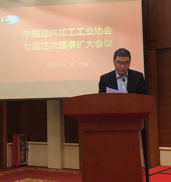 5月20日上午,中国塑料加工工业协会七届四次理事扩大会议在广州珠江宾馆三楼多功能厅举行,协会理事长朱文玮、专职副理事长曹俭、马占峰、王占杰(兼秘书长),及协会副理事长、浙江省塑料行业协会会长兼公司董事长韩新伟等出席会议,并在主席台就座,全国各省市塑料协会会长、秘书长及中塑协理事参加会议。