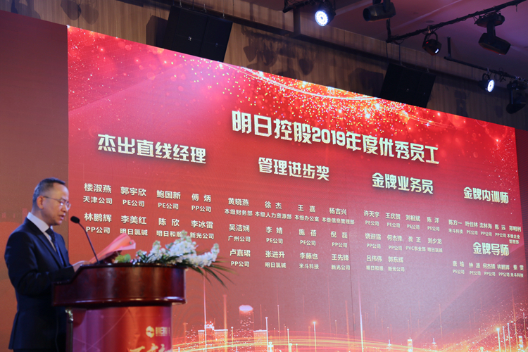 韩新伟代表乐玩(中国)控股党总支、董事会、经营班子热烈欢迎到会来宾,对各界人士的关心支持和全体同仁的辛勤付出表示感谢。他表示,2019年是极不平凡的一年,在建国70周年的重要历史时点,在中美贸易战、GDP增速下滑、塑料产业扩产周期等经济环境下,全体乐玩(中国)人迎难而上、奋勇争先,全年公司实现乐玩(中国)商品销量480万吨,同比增长20%,销售额380亿元,同比增长5%,利润总额基本持平,较好完成了年度目标任务。