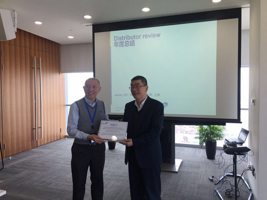 会上,博禄公司王裕能向韩新伟授予在中国内销售博禄产品的非独家经销权证书。