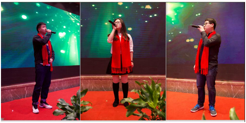 米斗科技员工代表(朱林滨、宣申珂、吕玉敏)演唱《千千阙歌》